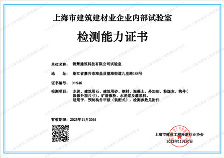 上海市建筑建材業(yè)企業(yè)內(nèi)部試驗(yàn)室檢測能力證書