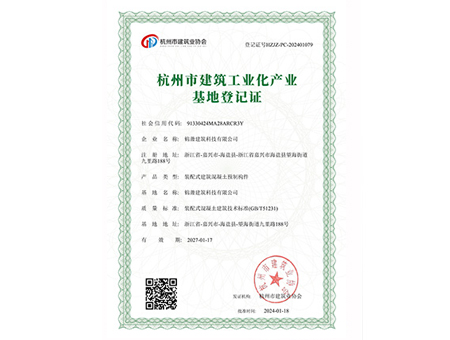 杭州市建筑工業(yè)化產(chǎn)業(yè)基地登記證