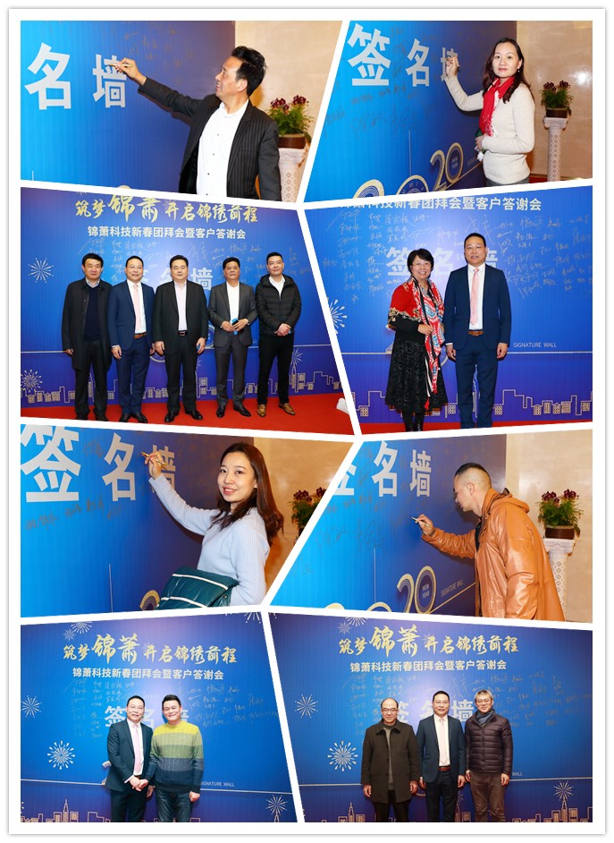 2020年1月2日,錦蕭建筑科技有限公司迎春團拜會暨客戶答謝會在上海松江東霖薈大酒店隆重舉行。晚宴現場高朋滿座,氣氛熱烈,來自行業(yè)內外的各級領導、嘉賓、客戶朋友等400余人歡聚一堂,喜迎新年,共話未來。