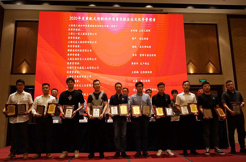 本次會議進(jìn)行了預(yù)制構(gòu)件專業(yè)委員會2020年度頒獎。表彰了15家“2020年度裝配式預(yù)制構(gòu)件質(zhì)量優(yōu)勝企業(yè)”及其優(yōu)秀管理者、兩家 “2020年度隧道管片構(gòu)件質(zhì)量優(yōu)勝企業(yè)”及其優(yōu)秀管理者、6家企業(yè)18名“2020年度裝配式構(gòu)件企業(yè)優(yōu)秀質(zhì)量操作者” 。