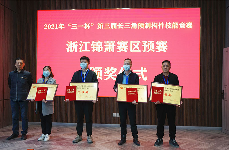 經(jīng)過激勵(lì)的角逐,最終浙江永堅(jiān)新材料科技股份有限公司,錦蕭建筑科技有限公司,浙江建楓裝配式建筑科技有限公司參賽隊(duì)表現(xiàn)突出,拿下比賽前三。賽后,作為承辦方,錦蕭科技總工程師王建忠分別為獲獎(jiǎng)參賽隊(duì)頒發(fā)了榮譽(yù)證書,同時(shí)獲得前三的參賽隊(duì)成員也將獲得由海鹽縣人力資源和社會(huì)保障局給予的獎(jiǎng)金獎(jiǎng)勵(lì)。