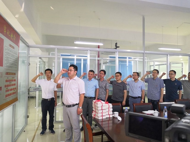 隨后,公司黨支部書(shū)記、副總經(jīng)理沈秋良帶領(lǐng)全體黨員重溫入黨誓詞,街道黨委委員繆李偉向公司黨支部全體黨員贈(zèng)送黨徽和十九大學(xué)習(xí)資料,鼓勵(lì)全體黨員大力弘揚(yáng)“紅船精神”,進(jìn)一步引導(dǎo)黨員同志不忘初心,牢記使命,砥礪前行。