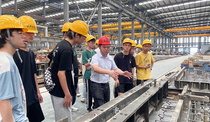 隨后,師生一行在相關(guān)負(fù)責(zé)人的陪同下實(shí)地參觀了公司生產(chǎn)車間,現(xiàn)場感受裝配式預(yù)制構(gòu)件的生產(chǎn)工藝和流程,公司技術(shù)人員對(duì)學(xué)生們提出的疑惑耐心地進(jìn)行了一一解答。