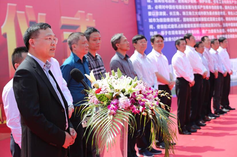 錦蕭科技董事長李軍介紹投資興建"年產(chǎn)70萬立方米建筑裝配式預(yù)制構(gòu)件生產(chǎn)建設(shè)項目"是積極響應(yīng)國家發(fā)展綠色建筑業(yè)的號召,項目總投資為8.05億元,新征建設(shè)用地152601平方米,工廠生產(chǎn)及配套用房建筑面積8.8萬平方米,擁有10個車間,成品堆場面積為8.34萬平方米,并配備運(yùn)輸碼頭一座,建成后年產(chǎn)量最大達(dá)70萬立方米,將成為目前國內(nèi)單個最大的裝配式PC構(gòu)件生產(chǎn)基地,產(chǎn)品會覆蓋上海、蘇州、嘉興、杭州、紹興、寧波等長三角地區(qū),并對前來參加奠基儀式的各位領(lǐng)導(dǎo)和各界朋友表示衷心感謝,作了歡迎詞。