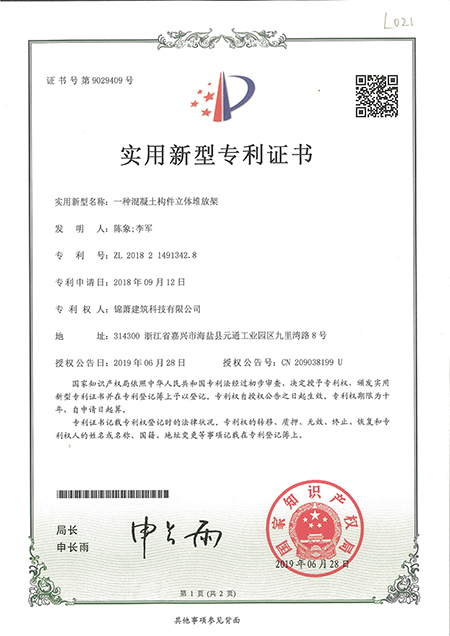 專利證書(shū)--一種混凝土構(gòu)件立體堆放架