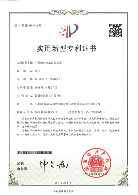 專利證書(shū)--一種疊合梁箍筋定位工裝