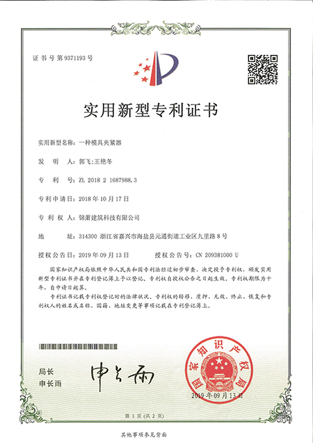 專利證書(shū)--一種預(yù)制字體構(gòu)件的模具